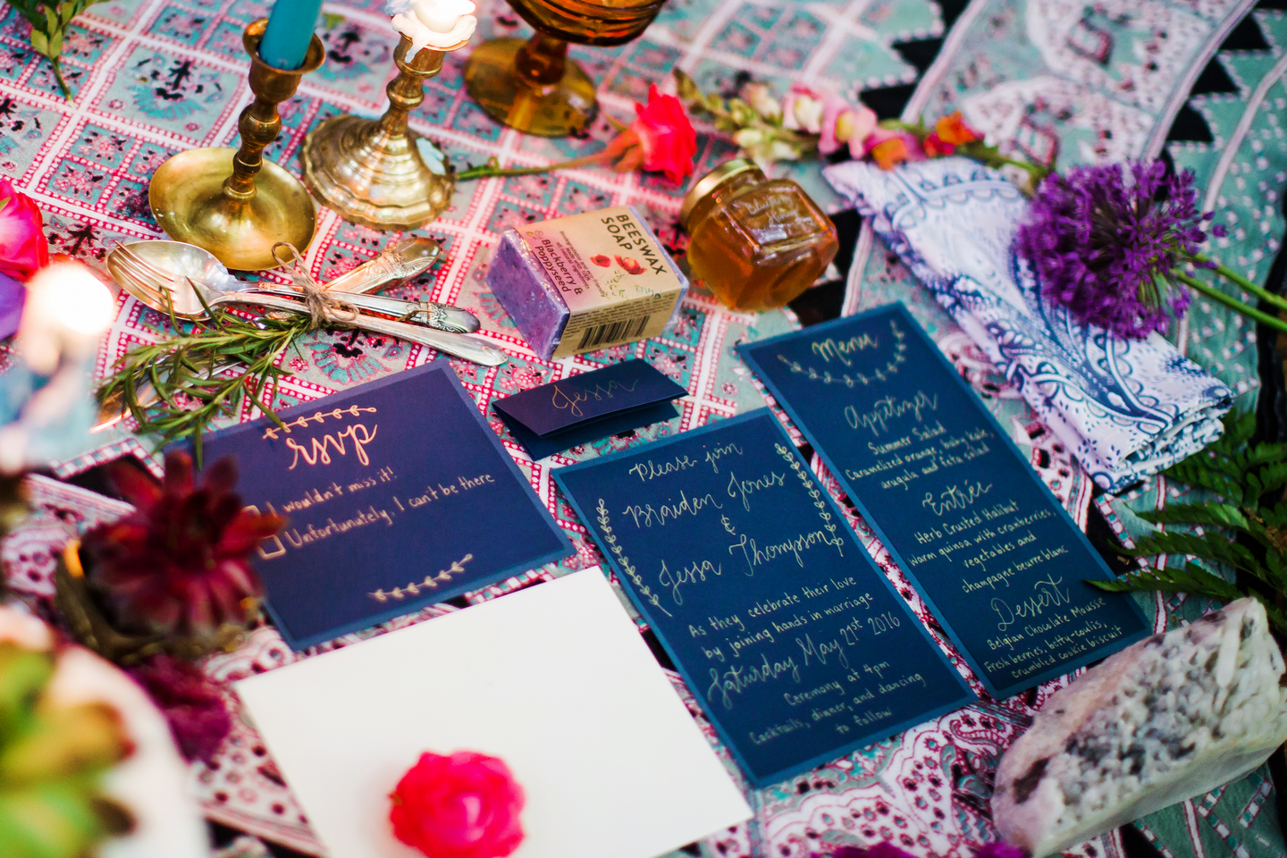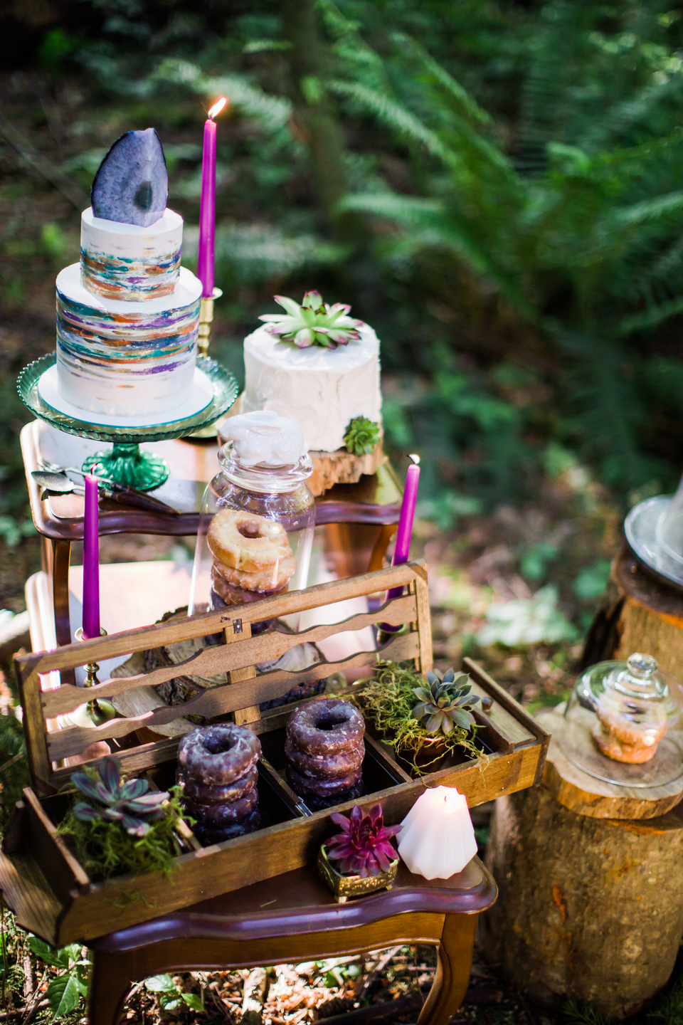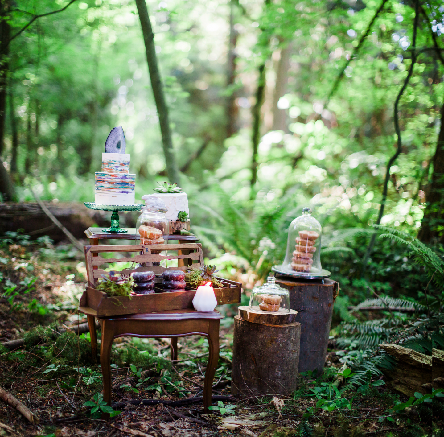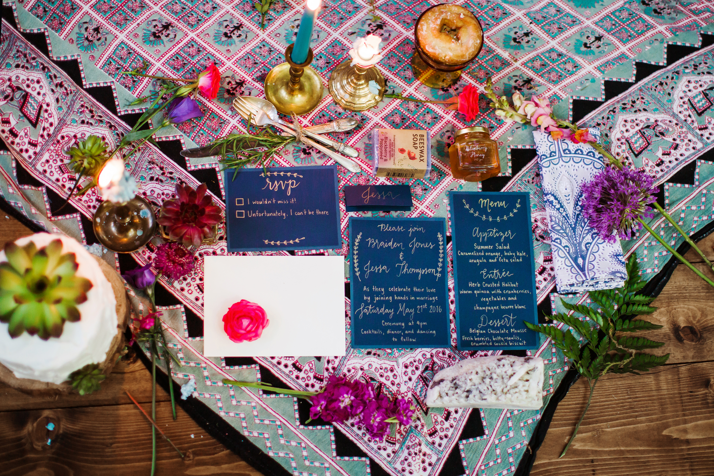 We had such an epic team of amazing Vancouver Wedding Vendors that participated in this shoot! Past Pieces took care of the decor and overall look of the entire shoot. Kick Ass Cakes and The Cake and Giraffe provided amazing mini cakes that were as delicious as they look in the photos! Hand Lettered Love by Bev created the beautiful invitations. The lovely ladies from Save the Date Beauty took care of hair and makeup for our gorgeous model and also provided all the stunning dream catchers we used on the beach! The Main Street Honey Shoppe was kind enough to provide the honey favours for our table setting. Little Pink Dress provided the amazing lacy boho dress for our model, while The Gypsy Heart took care of the accessories! Florals were created by Bridal Beginnings!